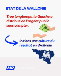 Le MR souhaite rompre avec une culture de l’assistanat et des slogans, pour lui substituer une culture du résultat, où chaque action publique vise un impact concret.